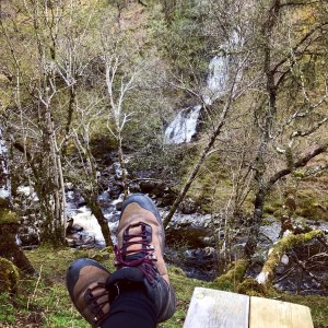 The waterfall in question I since learned is the Sputan Dubh which is far bigger than first anticipated. I found myself quite impressed by its beauty as I sat there on the picnic bench in this idyllic spot. After the tiring climb up the hilly trail, I found the sounds of the waterfall very therapeutic and I stayed approximately 20 minutes enjoying the views. I noticed a tiny path leading down to the falls but if I’m honest, it didn’t look to be very safe. However there was a man sat hidden in the bottom with a tripod and camera which really didn’t surprise me. The scenery out here really was picture postcard and unfortunately, my iPhone 7 camera really doesn’t do it any justice.