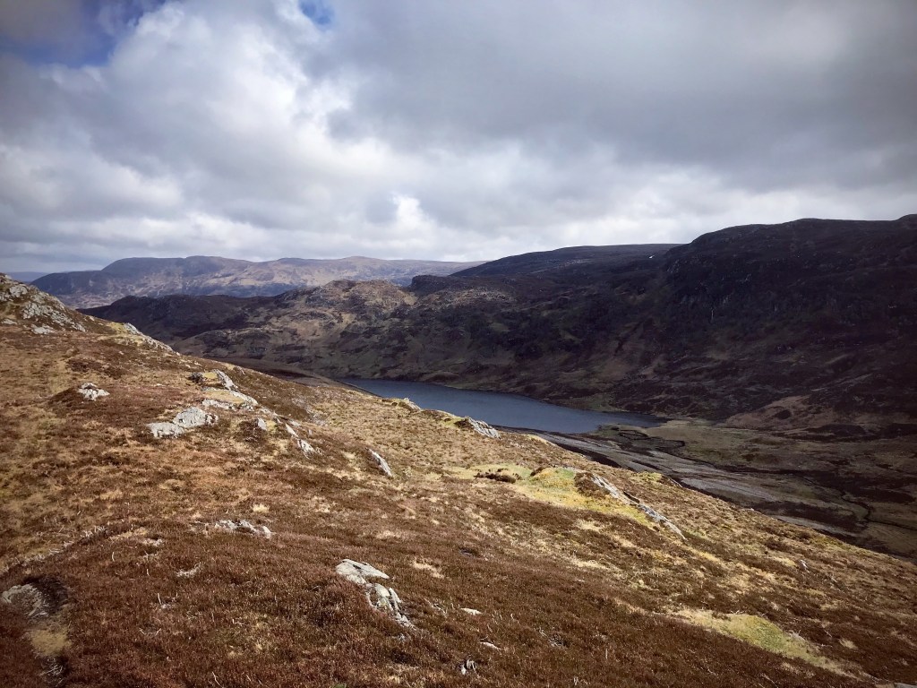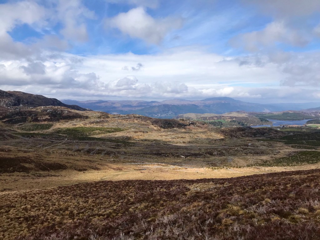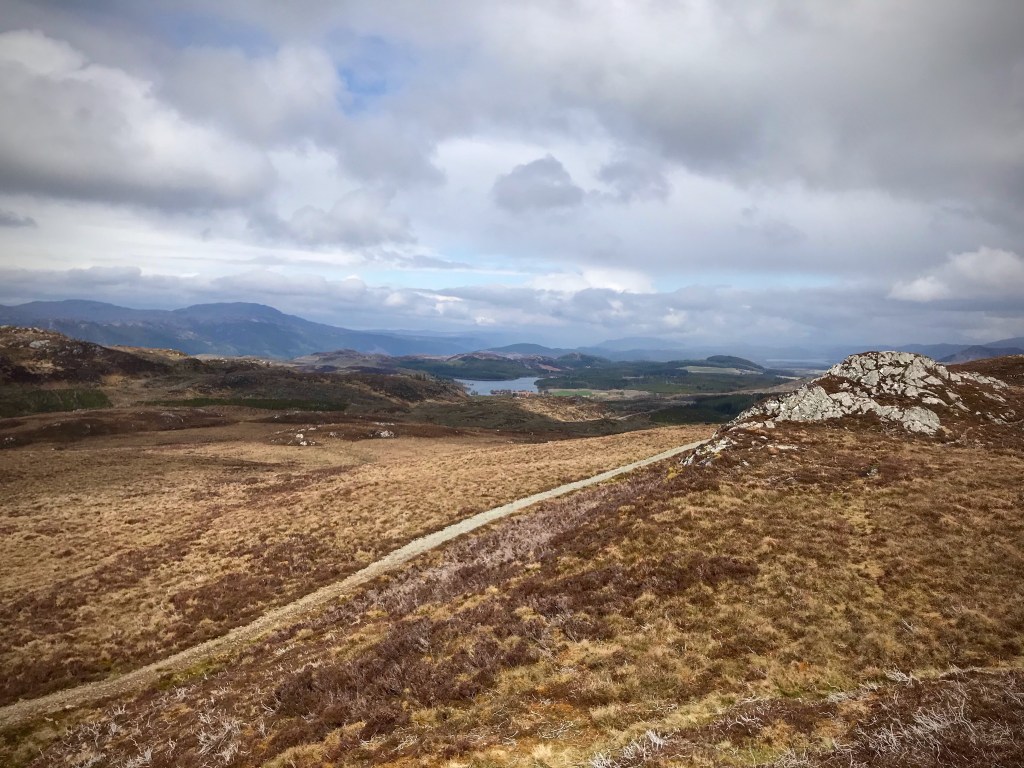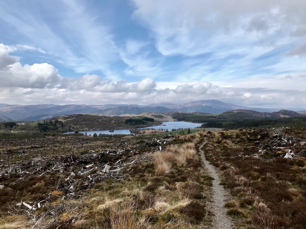 After a pleasant 30 minute lunch break on the edge of Suidhe Chuimein, it was time to head off and continue the journey. Edging back onto the trail, it was a steady descent along the rocky path down towards the wide asphalt road. As I walked I could see by the landscape that this area should have been the Whitebridge Plantation, an area of once lush forestry which was now no more. Every tree and greenery which had once grew here had been completely cleared in a vast project of deforestation. Although this had opened up the viewing opportunities somewhat and made the surrounding areas more visible, I couldn’t help but feel a little disappointed. Forestry and woodland areas are key to providing a viable habitat to the various wildlife which are popular in these parts of Scotland and without it, the population would most definitely suffer.