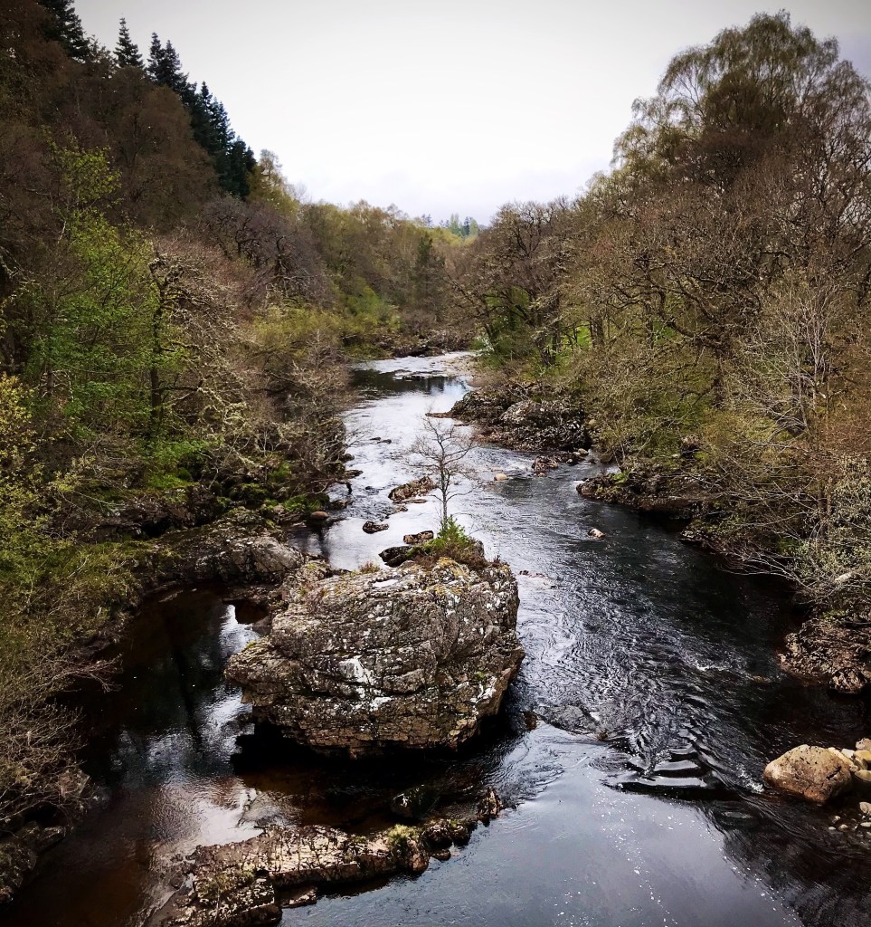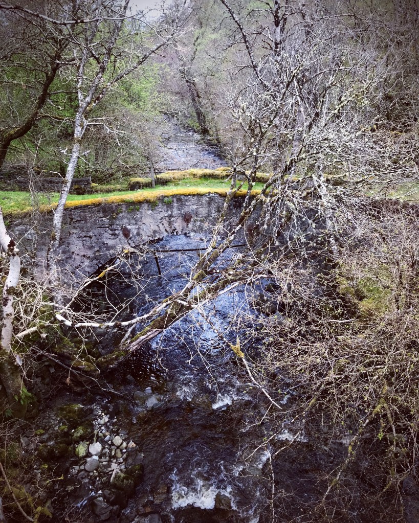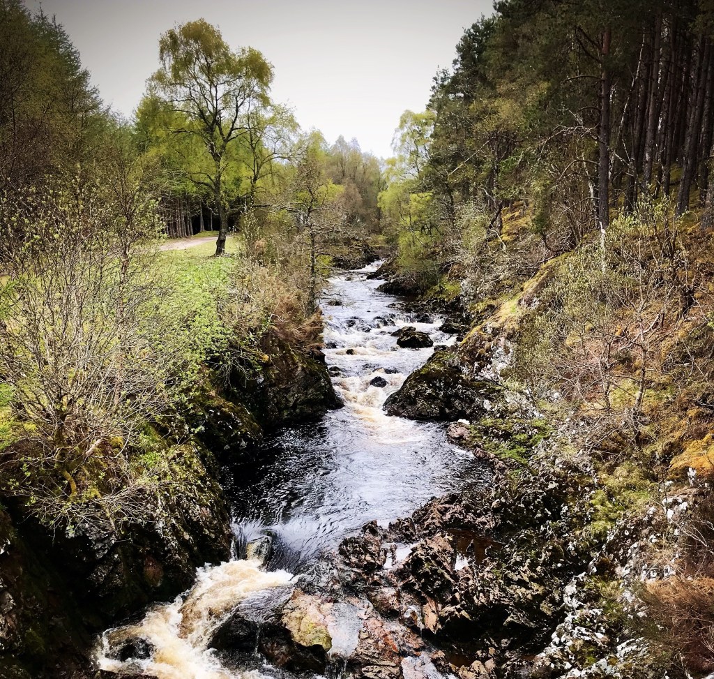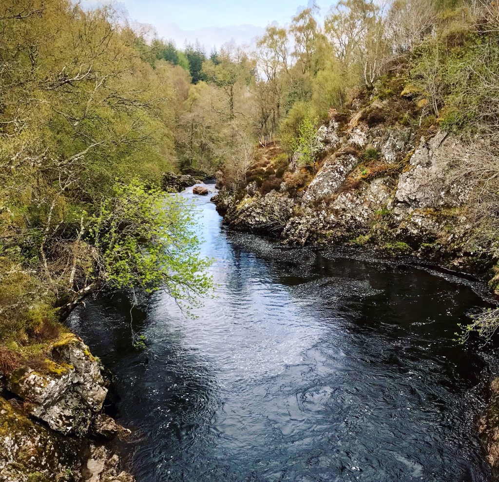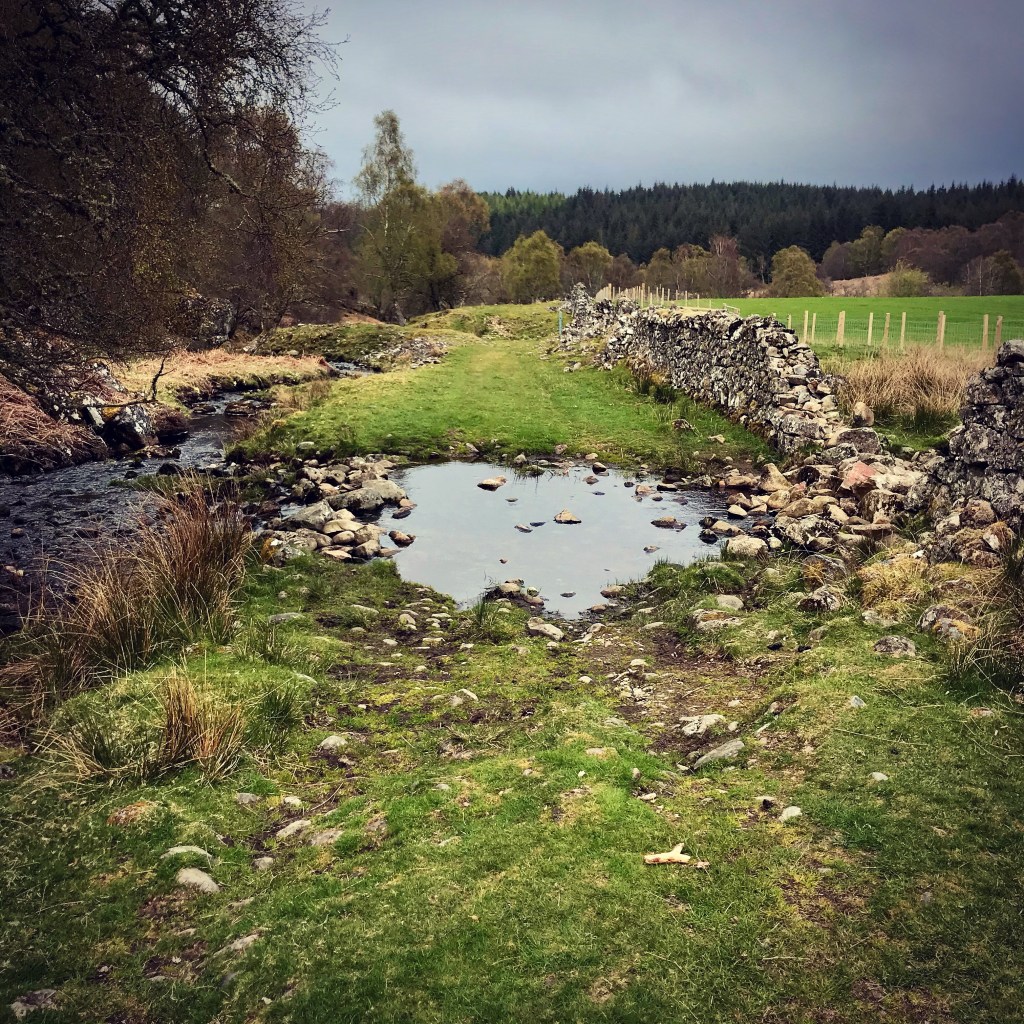 Further along, the trail eventually crosses a road bridge over the Cumrack Burn before heading off right through a small wooded copse of trees and joins up with the General Wade’s Military Road for the last time on this journey. The views over the bridge are quite breathtaking and in one part, the river looks almost perfect to swim in. What I would have given to take off my hot, sticky walking gear right there and then and taken a dip I really cannot describe! However, on closer inspection, I saw that the undercurrent was actually very fast despite the water looking relatively calm on the surface.