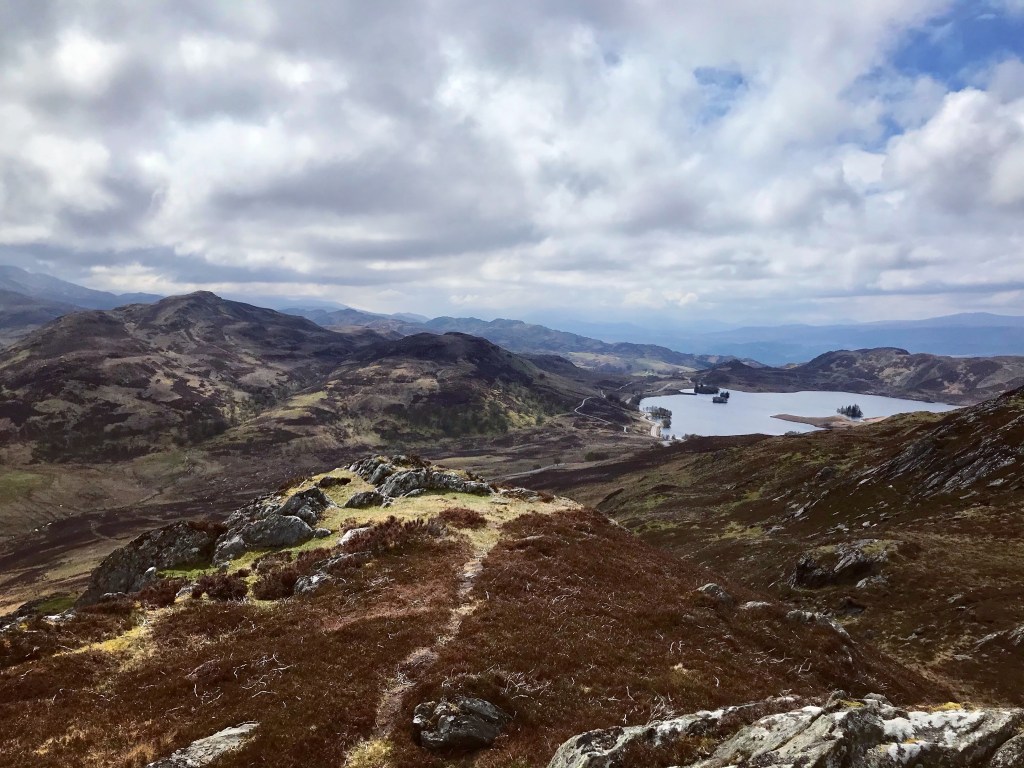 The summit of the Suidhe Chuimein was not marked by anything in particular which did surprise me (no cairn or trig point for me that day), it is literally nothing more than a bare mountain peak which involves a sharp scramble upon leaving the mountain path. Standing at approximately 1,400 feet above sea level, the views to be had from this vantage point however, took my breath away! I could see for literally miles in every direction and I have since learned that the Suidhe Chuimein (also named ‘Cumin’s Seat’), is the hot favourite spot to visit if hoping to view the whole of 7 lochans on a clear day.