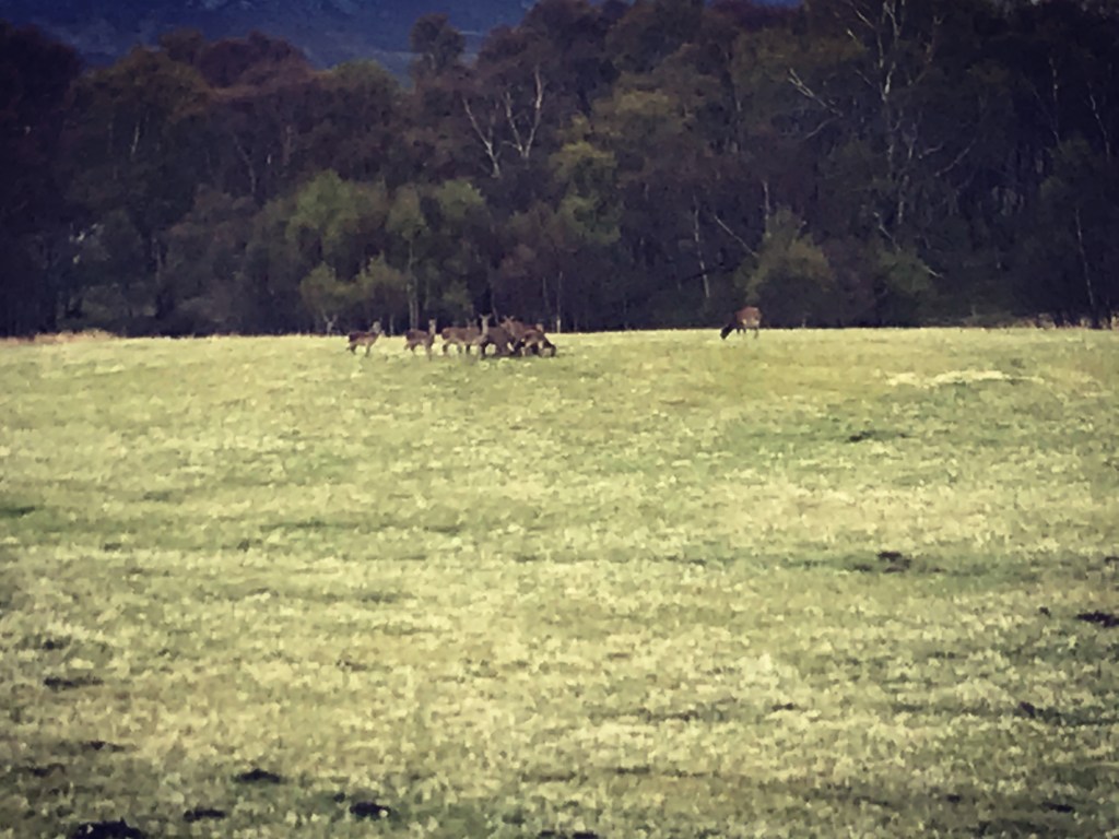 The next section of the trail along the Ardochy Road was probably my least favourite of the day. It was a very long and boring road which ran in a complete straight line, surrounded by high wire fences. On either side however were farmland and in a large field only a short distance away, my first opportunity arose to photograph and film a herd of Deer. I was in complete awe and thought at first that they must belong to the farm. They looked so at home in their surroundings despite watching me carefully as I photographed them. I soon figured though that they were in-fact wild Deer when they all suddenly leapt over a dry stone wall into the surrounding woods… but what a grand way to brighten an otherwise boring road walk! I was beginning to understand now how these trail hikes go. For every high there follows a challenging part, and every challenge is rewarded in beauty… You just have to open your eyes and look.
