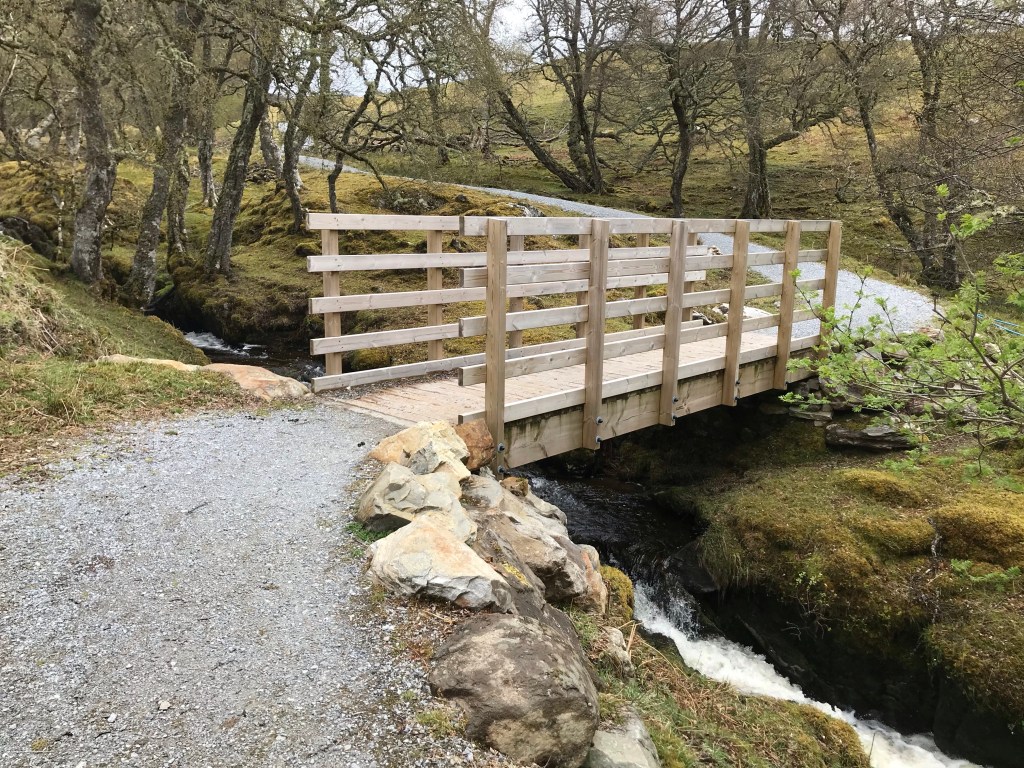 The next small section of trail involves following the road for approximately 15 minutes or so until a large public house can be spotted on the right. This is the popular Whitebridge Hotel which offers cooked meals and accommodation. If I’d had more time I may well have paid it a visit but it was getting late now and I still had not reached my camping destination. I did take a short 5 minute rest stop however to photograph the famous bridge crossing the River Fechlin which gave the village of Whitebridge its name.