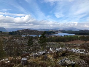 Deforestation in many circumstances is necessary for several reasons but it seemed that I had experienced an awful lot of it so far during this hike. This area at Whitebridge Plantation in particular was a large one and all that remained was vast amounts of dead, dry tree trunk and sticks. It certainly was not recent that this work had been carried out and no signs of any tree planting was visible. It really looked like a bad sign for much of the Scottish forestry in recent times and I remember praying that this would change if only to preserve nature and not completely spoil a very beautiful part of the Scottish Highlands. Check out the views though of the surrounding landscape.