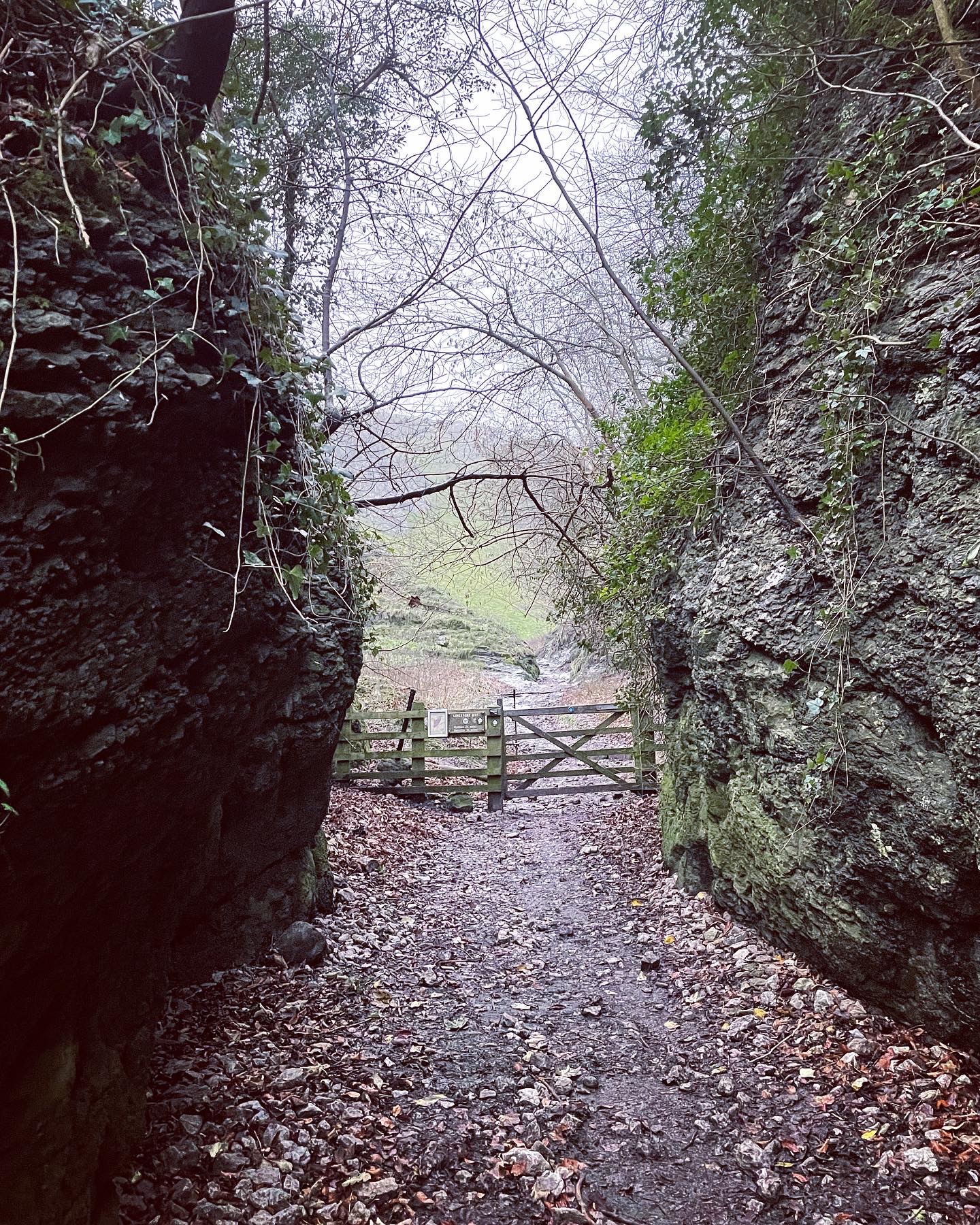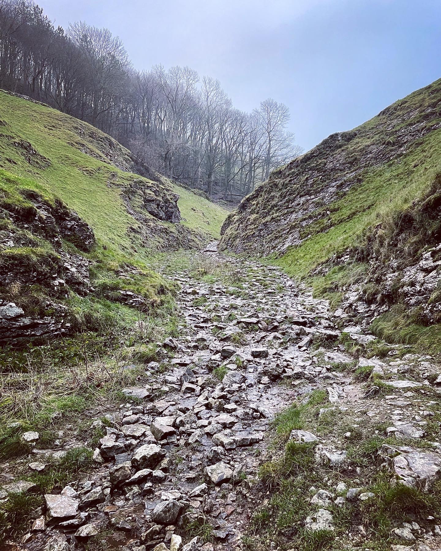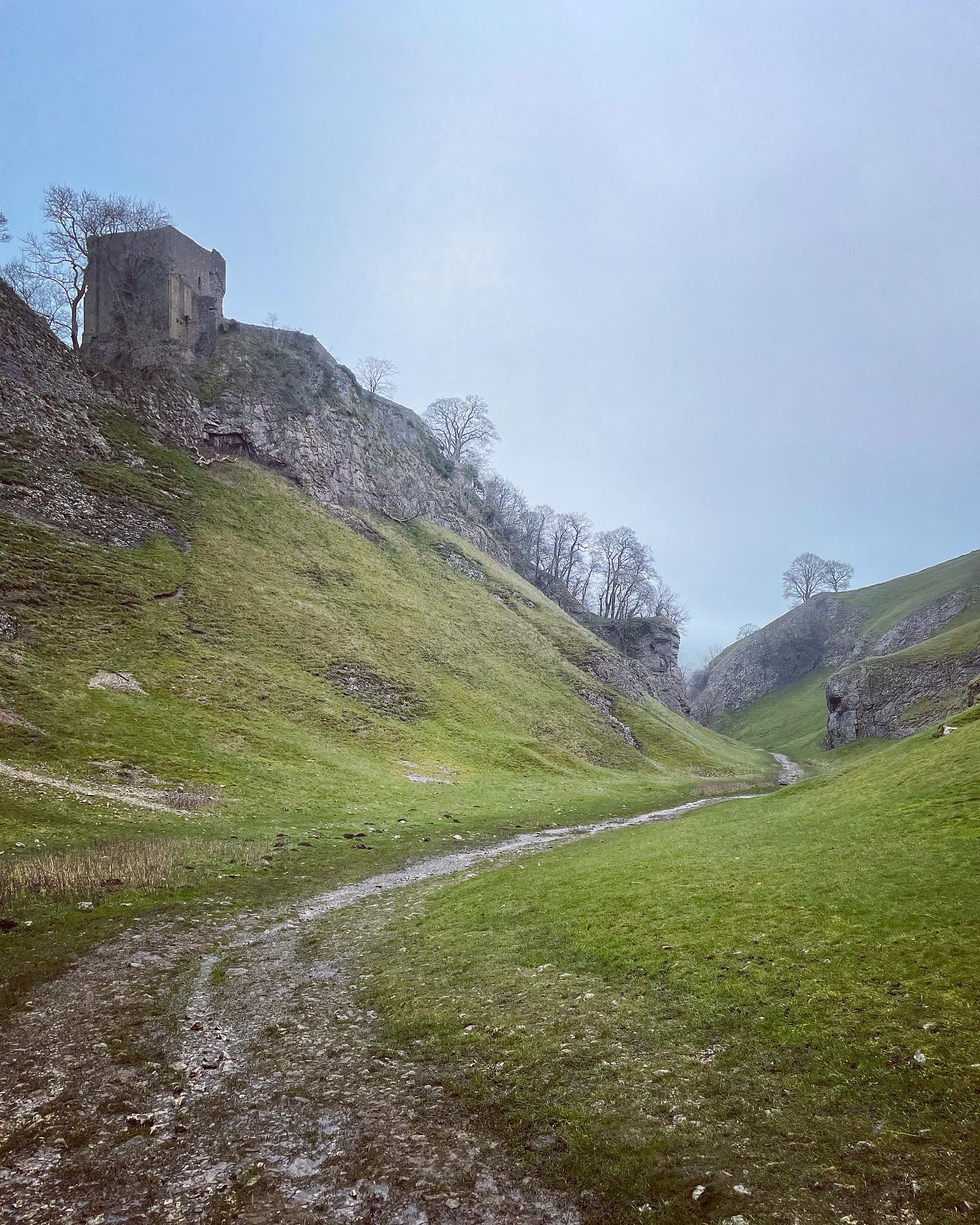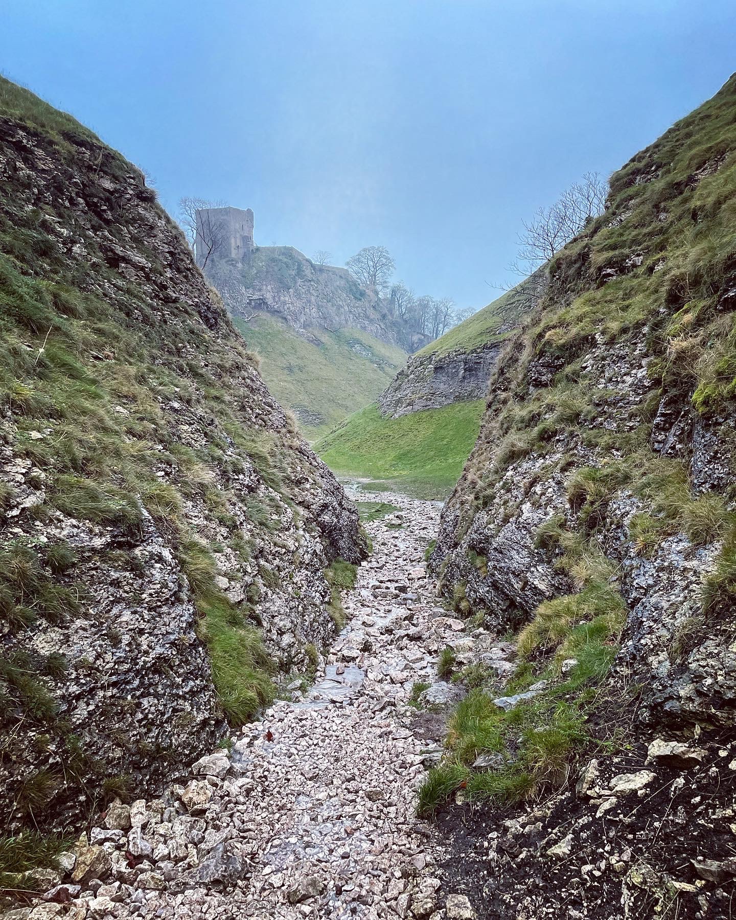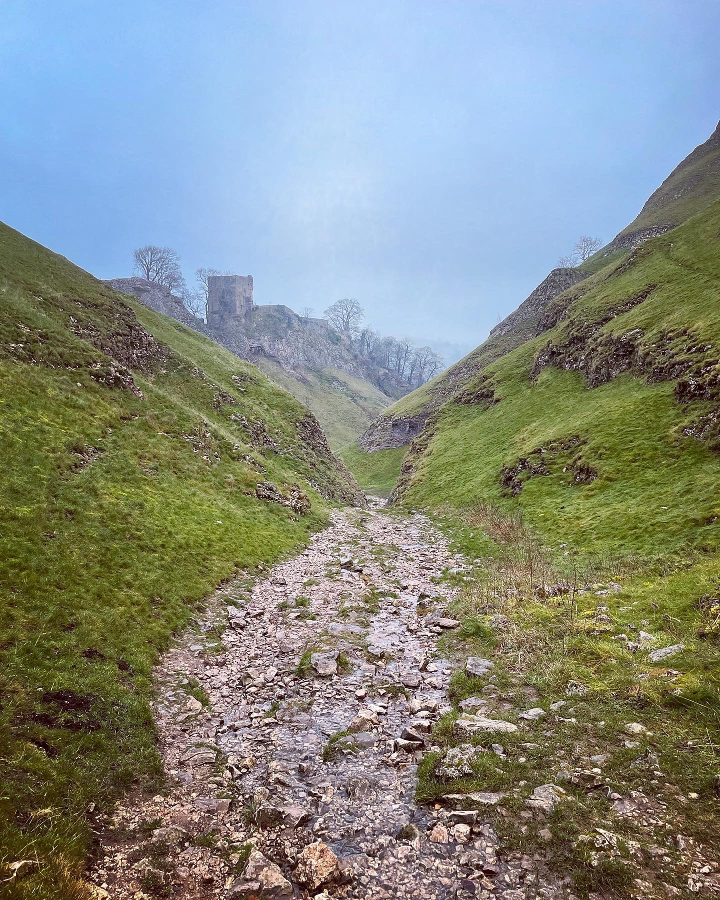 The mists were still ever present but I could just make out the distinctive shape of Peveril Castle on the hillside just ahead of me. The path down had literally become a stream with this being common from early autumn right through to the hot summer months. Although a stunningly beautiful spot to be at in the High Peak/White Peak border, it is clearly underestimated when taking into consideration the safety involved.