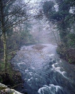 Turning right at the Hope Road I noticed my first Christmassy scene of the walk, a lonely Christmas tree set back from the road. I remember smiling to myself as I passed and instantly felt relieved that I had finished all my Christmas gift shopping the week before. No more stress and worry for me which seemed to get worse with every passing year. Continuing onwards, I followed Hope Road for approximately 10 minutes until I reached the fast flowing River Noe on my left. At this point I crossed over and took a left turn over a stone bridge crossing the river and began heading up a tiny, narrow lane leading into Shatton.