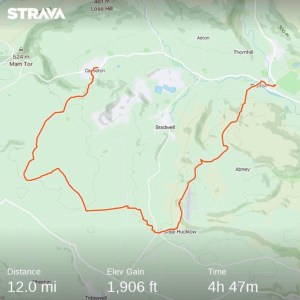 The trail then involved following a faint public footpath across the fields at Bradwell Moor before meeting up with the Limestone Way.