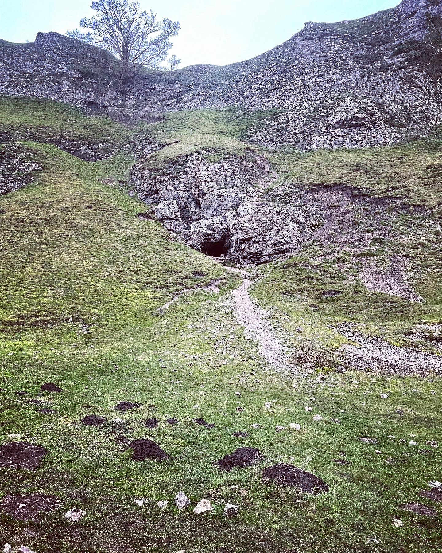 Cave Dale is located behind Peveril Castle in Castleton, Derbyshire and is a limestone reef thought to have been formed by post glacial melt water. The water formed a river which then formed a deep, steep sided valley in the limestone over the years. Eventually over time, the water disappeared as it found its way into deep underground tunnels below the valley leaving behind this magnificent reef which cuts through dry limestone. The land below Cave Dale and it’s surrounding areas were heavily used for lead mining and some of the caves and holes seen in the limestone rock face date back to these times. Many of the small caves and fissures eventually lead into the bigger caverns that run deep underneath the limestone reef.
