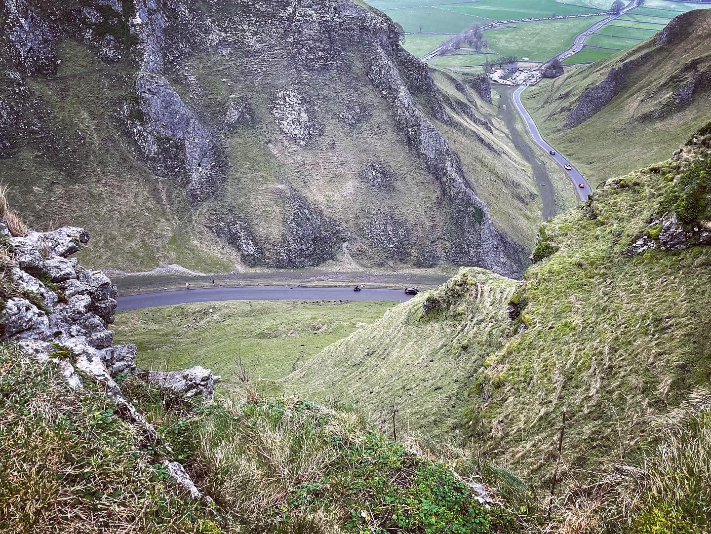 Winnat’s Pass is a limestone gorge with steep sided, high crag faces located within the High Peak boundary of the Peak District National Park. It is so named after ‘wind gates’ and the loud almost screaming sounds which are heard when the swirling winds blow through the gorge. According to local myth, the Pass is said to be haunted by the spirits of a couple who ran away together in the 17th century only to be murdered by miners, their bodies hidden in mine shafts at Winnat’s Pass. As you make your way down through the gorge or pick your way along the top, small caves can clearly be seen in the crag face. One such cave ‘suicide cave’ is located on the bottom right side of the Pass and is used by experienced cavers.