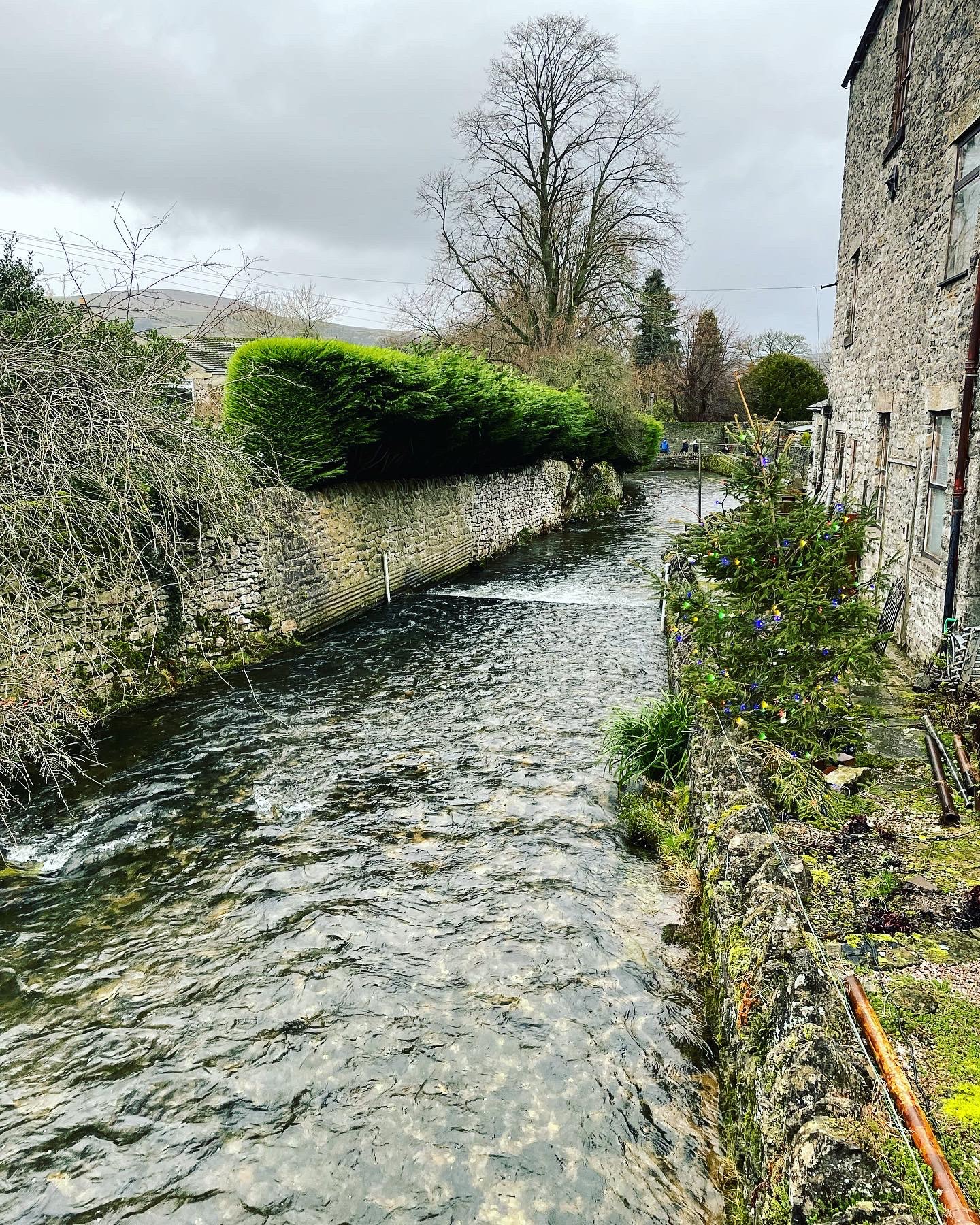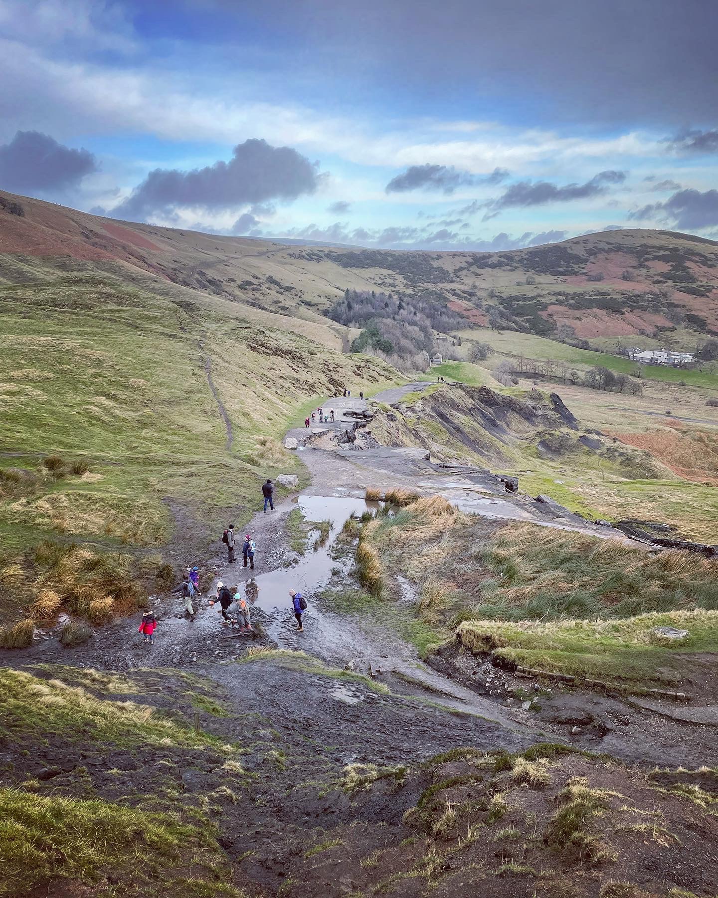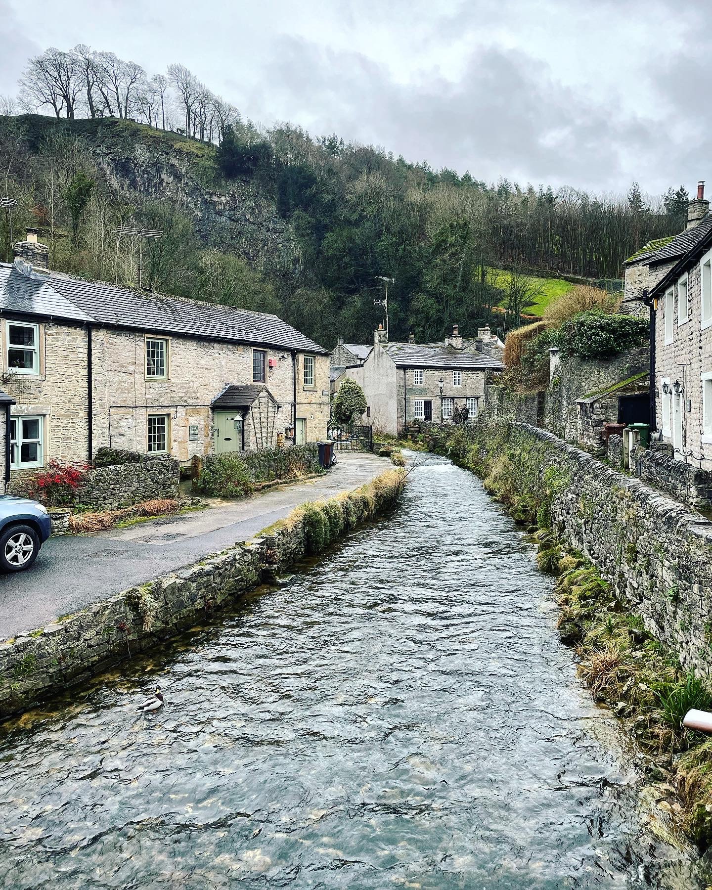 Upon reaching the end of the Winnat’s Pass ridge, we decided to head down off the top and detour into the village of Castleton to finish the day. By the time we reached the bottom, it had started to rain and this continued for the rest of the afternoon. It was quite a muddy walk along a stoney footpath which lead right into the village itself. Upon arrival, it was lovely to see all the cottages and walkways still lit up with Christmas decorations which would no doubt be getting taken down soon. The ducks in the river were all out in full force enjoying the strong currents brought on by the rainfall.