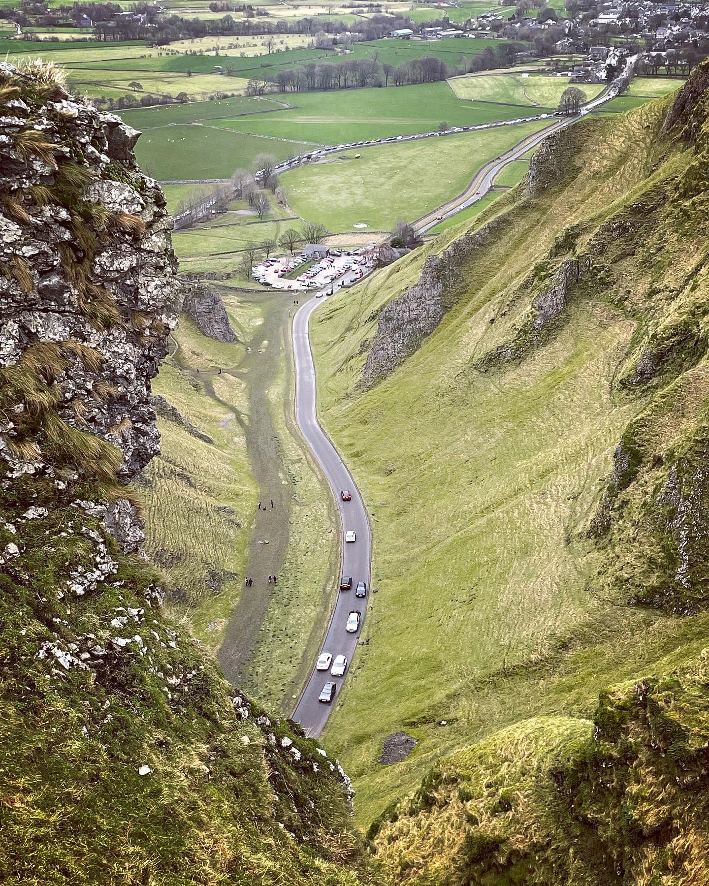 The spot to visit the broken road is in close proximity to the Blue John and Treak Caverns, two of four tourist caverns within the Castleton location. On the day I visited, many cars were parked along the road and in the car park as people flocked to visit Blue John. It is common for people to visit the broken road whilst in the area after a tour of the caverns.