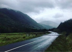 Despite the heavy rainfall which had continued for most of the night, I had to admit that I quite liked the dark, rolling scenery which befell me. The mists had certainly crept in and were circling low between the towering peaks of the surrounding mountains. Dark, black rain clouds lingered making everywhere appear much darker than what it actually was. Not a soul was in sight. I cast my mind to the day before when I had stood at the halfway point at the lochan on Ben Nevis and glanced in the direction I was now walking. The sun had bathed everywhere in golden light then, a total stark contrast to today. No cars lined the lanes as they did yesterday, nor was there any sign of life in the Glen Nevis pub where I had enjoyed a tasty three course meal the night before. No, the road ahead was dreary with the familiar threat of rain. Typical Scottish weather one might say.