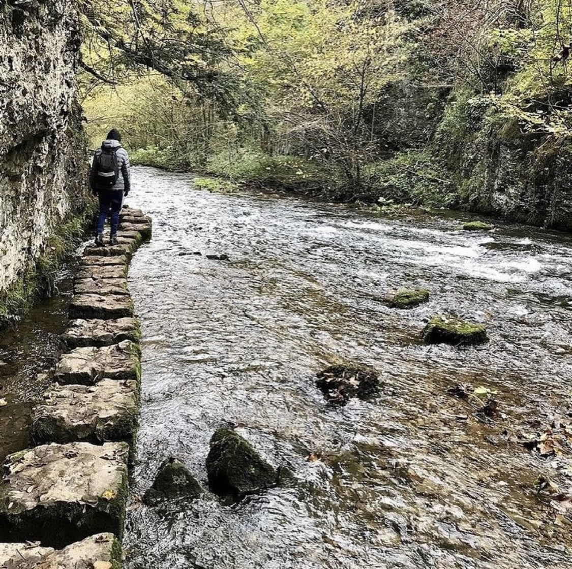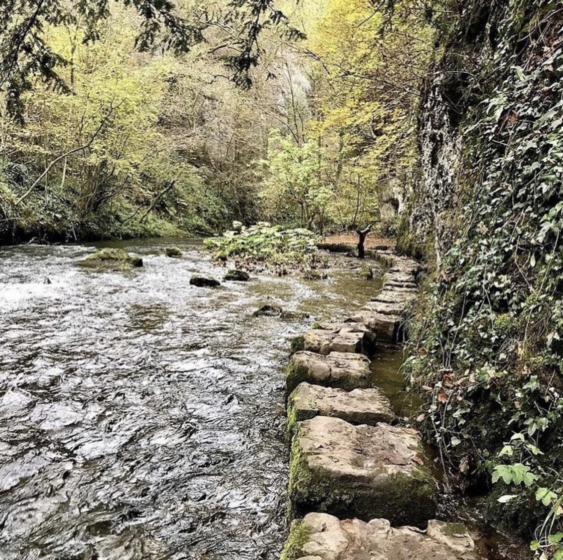 WARNING: This route although safe, does run alongside the river Wye with 2 sets of stepping stones which are needed to navigate the narrow limestone gorge. At certain times of the year when the water levels are high and especially during autumn and winter months, the stepping stones become completely submerged making this particular route impossible. Alternative routes are available.