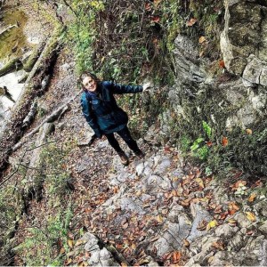 Continuing onwards, it is not long before the gorge narrows once again and the footpath runs close to the waters edge. At first glance, it appeared that the path disappeared underneath the enclosing crag sides and ran into the river itself. On closer inspection, we found that indeed it did, however, there were some pretty stepping stones which led the way safety along. They were considerably useful to have in place at this section of the walk as the way would have been impossible without them. The steep sides of the gorge are vertical here and in places, overhang the river, meaning that there is no place for a footpath to run.