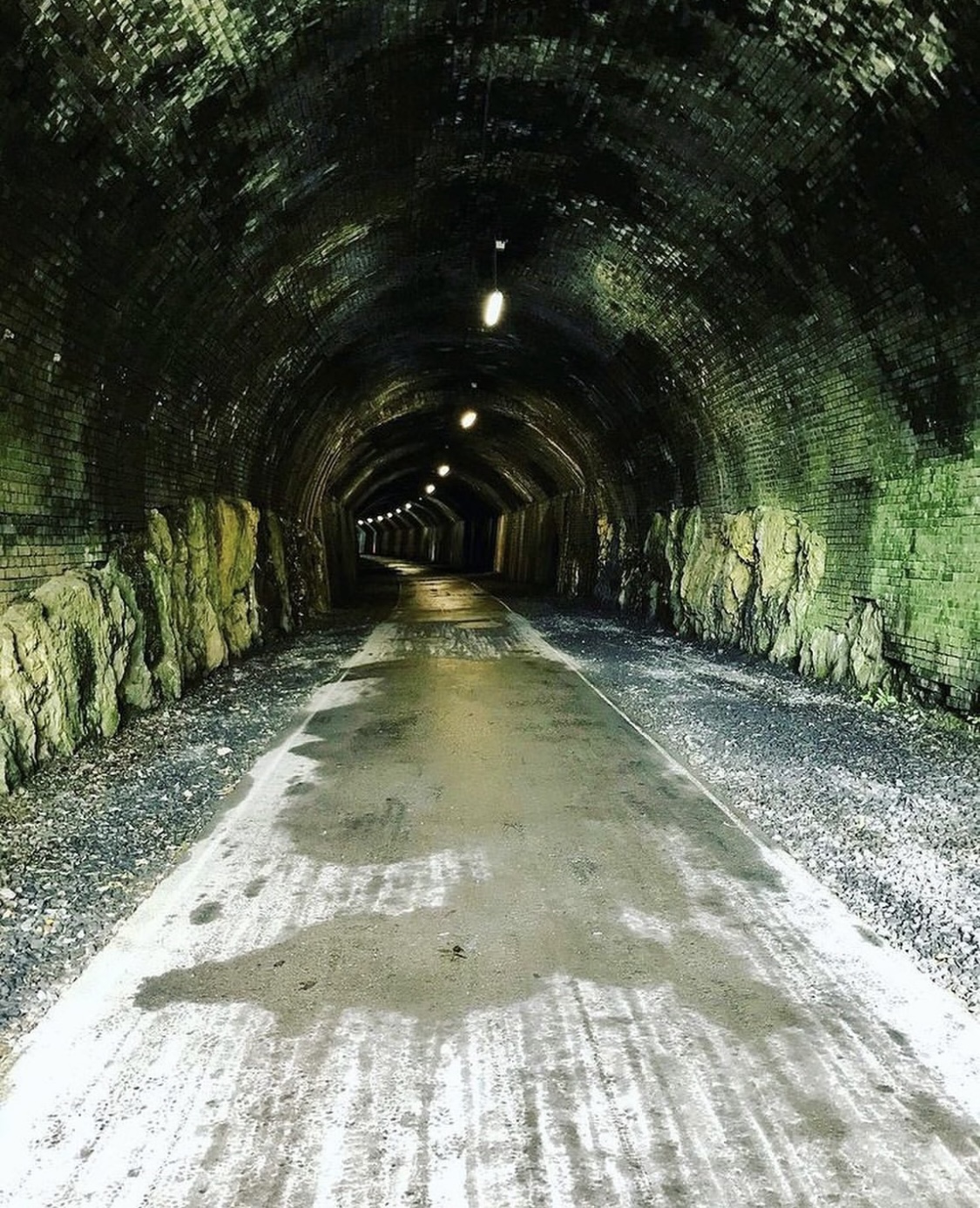 The Chee Tor Tunnels are 2 of the 6 tunnels which can be enjoyed on the Monsal Trail with Chee Tor 1 being the longest. I have to admit that on this occasion it was the first time that I had visited the trail and I had never stepped foot in any railway tunnels before. As we entered we were both struck by the sheer size and height of the tunnel inside. We could see right along the length until it disappeared around a bend which seemed miles away from where we stood and as we walked, we felt the cool draft on our cheeks. The walls of the tunnel were damp and covered with a fine algae substance which was tinged with moisture from the water droplets which dripped down from the top of the tunnel every now and then. I remember glancing upwards towards the ceiling on occasion and spotting what looked like old black soot in the faint light. It seemed a strange feeling to know that it would still be present after all the years of not being used for trains and other locomotive.
