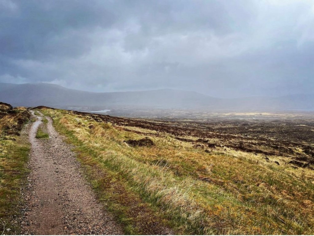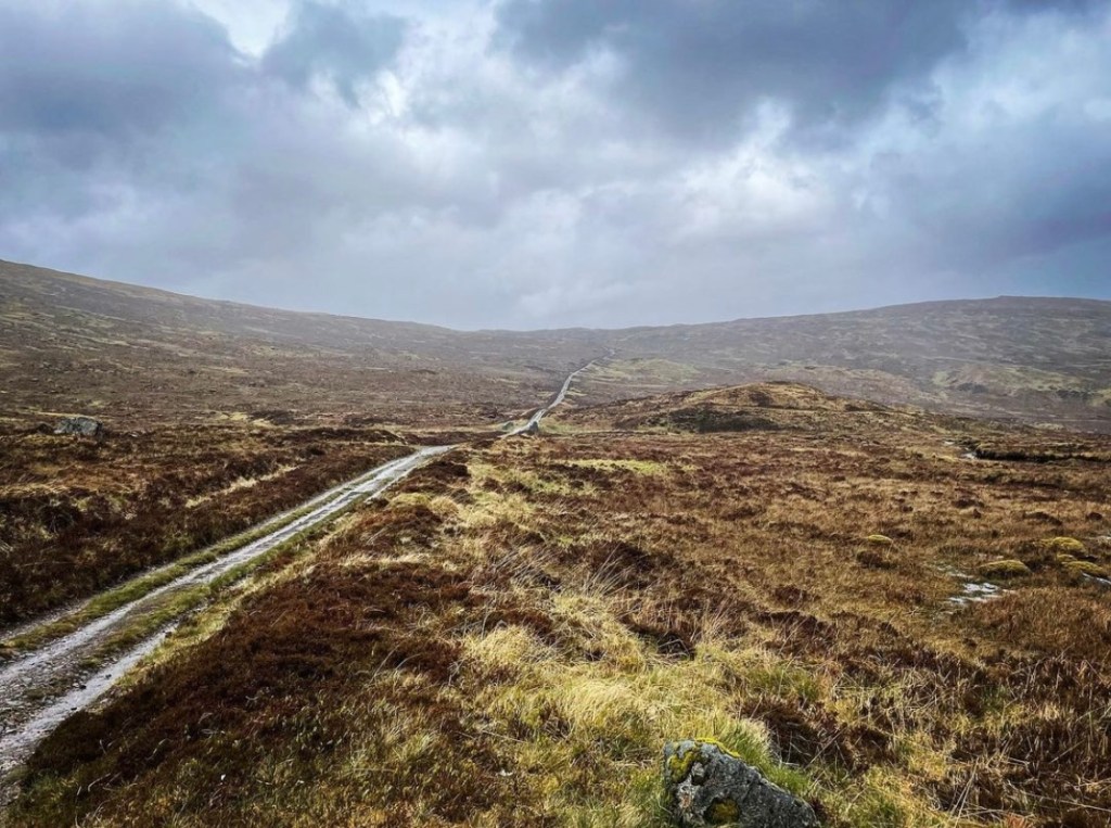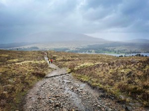 It was a mix of emotions as I ventured on. In one moment I felt deflated, cheated that the very section of trail I had looked forward to the most was being thwarted by mist and sideways rain. It was freezing too by now and my face tingled worse than ever. Yet in the next I’d remind myself of what a privilege it was to be able to walk this amazing path and even with the scenery not as clear as I had hoped, every now and then I’d catch the far off lochans of Gaineamhach, Mathair Eite and Dubh Lochan on my right. It really was a sight to behold and was so secluded it took nothingness to another level.