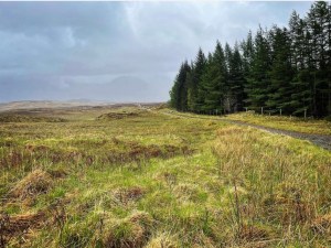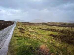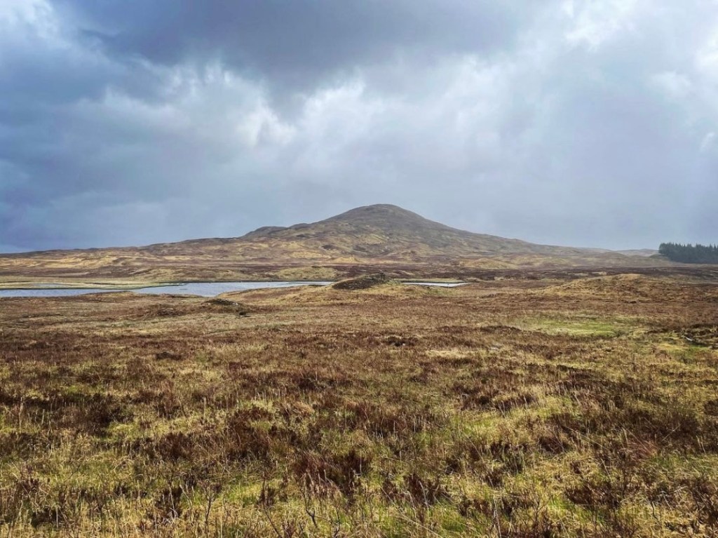 The track led on through the vast open land as I passed copses of forestry on both sides of the trail. They were only tiny really but it made me think about what actually was here before it was deforested. The trail drops into a dip at this point as it heads into the Black Mount and through an area appropriately named The Moss. Here I passed another tall mountain, the Meall Beag and a lochan called Mhic Pheadair Ruaidh. It’s waters looked still but not inviting. The fog might’ve been clearing but it was now raining once more, the wind blowing sideways as I dodged the gusts pounding into me.