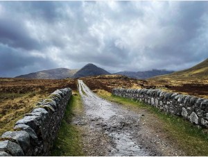 As I headed onwards, I caught glimpses of the huge mountains on my left. Tall, dark and foreboding where the mist appeared to be thickest as it swirled around the summits. I figured from my map that these mountains must be the Stob a Choire Odhair, Beinn Toaig and Coire Creagach. I knew I was now in that location and it would’ve been grand to see them on a better day, however right now, the sight before me looked eerie and there was a strange echo in the air which made me feel as if the mountains were moving and alive.