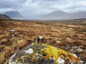 It was arranged that my friend (with the full approval of Connor’s family), would carry a portion of his ashes along the trail and scatter them in a special place. My friend chose this rock which is located up the hill from the trail and overlooks the magnificent Buachaille Etive Mor in Glen Coe as well as King’s house and has the best scenic panoramic views of the way. With this in mind, Connor whose ashes were scattered here in May 2019, will always be amongst the scene from Skyfall that he had so hoped to see.