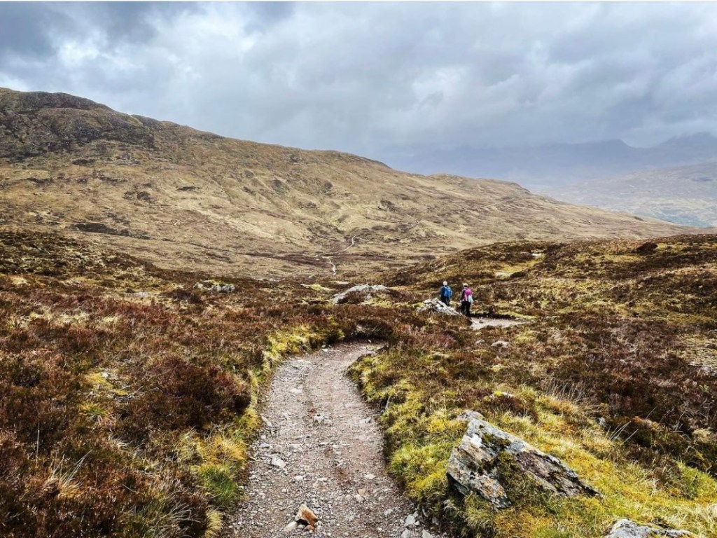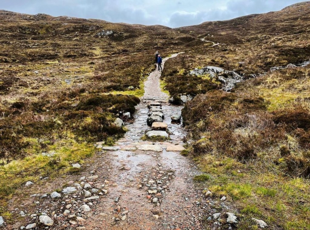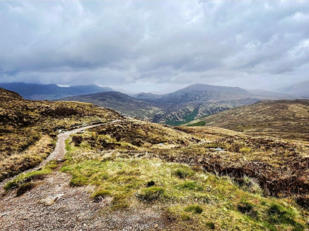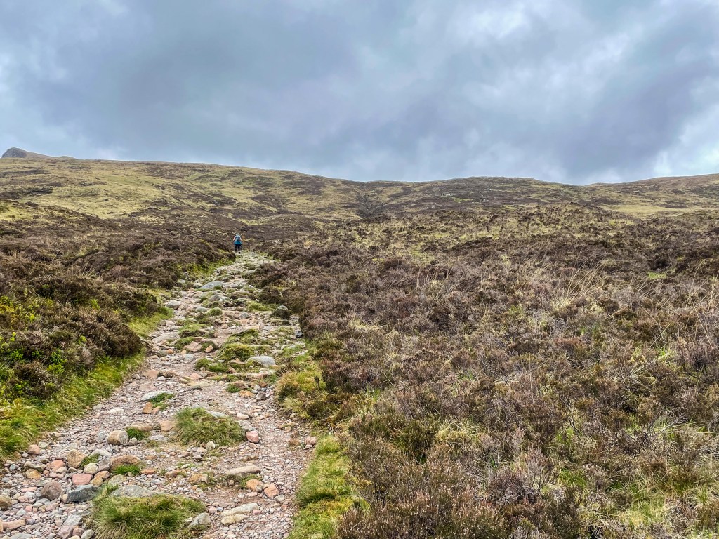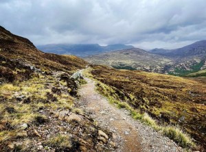 Leaving the cairn and shouldering the Sherpa, I began heading along the track into beautiful open land with amazing scenes and stunning colours in the landscape all around. I was finally heading gently downhill and it was a wonderful feeling knowing that Kinlochlevan would be waiting for me at the bottom. What I didn’t anticipate was how long it would take and the discomfort I would experience. In all my years of hiking, I’d always felt climbing to be the most hard going and strenuous on feet, never descending from a hilltop. It was here in this moment that I learned a tough lesson about hiking rugged terrain and how it makes all the difference. I never realised at the time I booked my room at Blackwater Hostel just how grateful of it I would be…