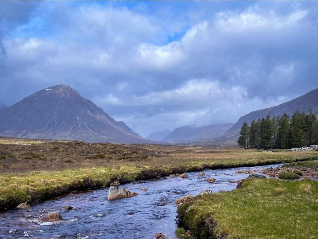 Before leaving my camping spot, I collected water from the tap outside the shower block which was very convenient and had a small explore around the area behind the wooded copse. In the photos below you will see the sight I enjoyed looking down the valley towards Buachaille Etive Mor and beyond it. What an experience it was! I felt so blessed that I had finally had the chance to enjoy it on this hike as after yesterday I had almost resigned myself to accepting that some things were just not meant to be. Standing here in the midst of such a sight made me realise just how much more there was to this location. The big Buachaille itself looked huge and a haven for climbers, almost like its own kingdom just waiting to be explored.