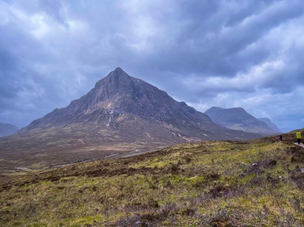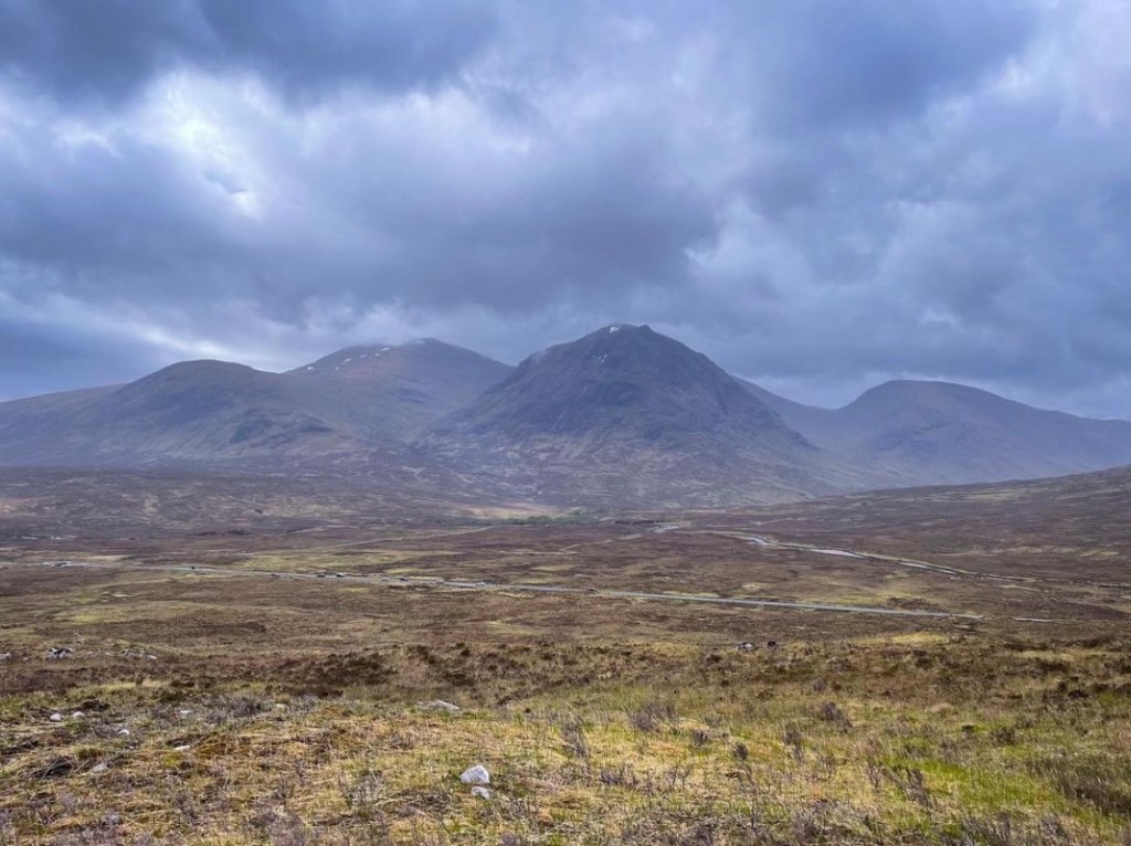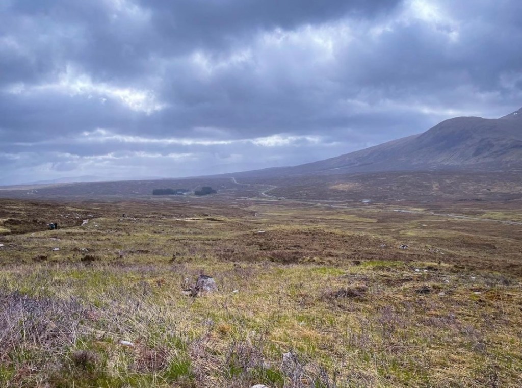 Glancing back towards the Kings House Hotel, I was gifted to panoramic views of the West Highland Way that I had hiked yesterday as I’d crossed Rannoch Moor in the pouring rain. The trail stretched back for miles weaving its way through the green, gold and brown. As I looked carefully I could just make out the spot where Connors Rock stood proud on the hillside. It was an insane thought that I was now in the path of his eternal gaze over Skyfall. I waved one last time before turning and leaving the scene for the final time this hike.