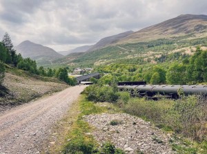Eventually the closed in and wooded landscape opens up again to reveal large pipelines which run along the trail as it heads into the village at Kinlochlevan. After completing the adventure, I was fascinated to learn that Kinlochlevan was the first village in the world to have every house connected to electricity giving it its name – the ‘electric village’. The hydro electric power scheme located high in the mountains, involved the creation of a gravity dam over 914 metres long, 27 metres high and had an elevation of over 305 meters. It is still seen as one of the greatest constructions to go down in history to date.